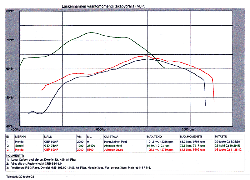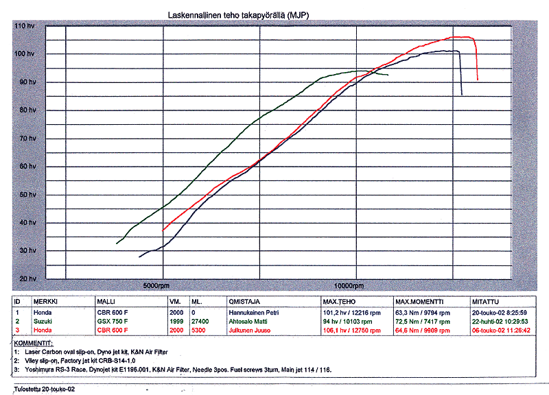 Alla teho/vääntökäyrät putken entisen omistajan pyörästä. Ainakin vääntö keskialueella näyttää parantuneen: